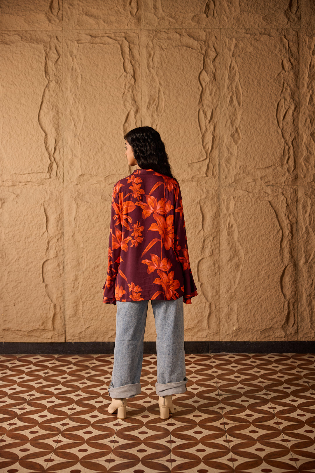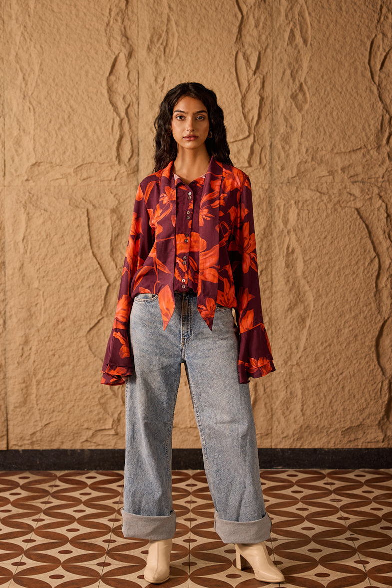 Effortlessly chic, the Ochra Shirt brings a contemporary twist to classic sophistication. Crafted in luxurious viscose, this full length shirt features refined double button detailing along the front and a scarf-like collar that can be styled in multiple ways, tie it for a polished look or leave it loose for relaxed elegance.